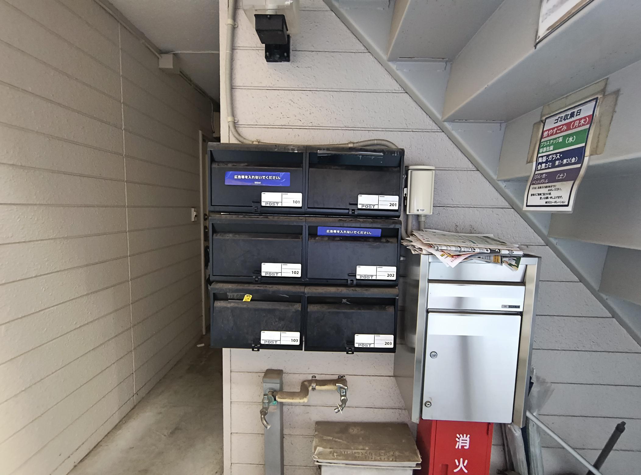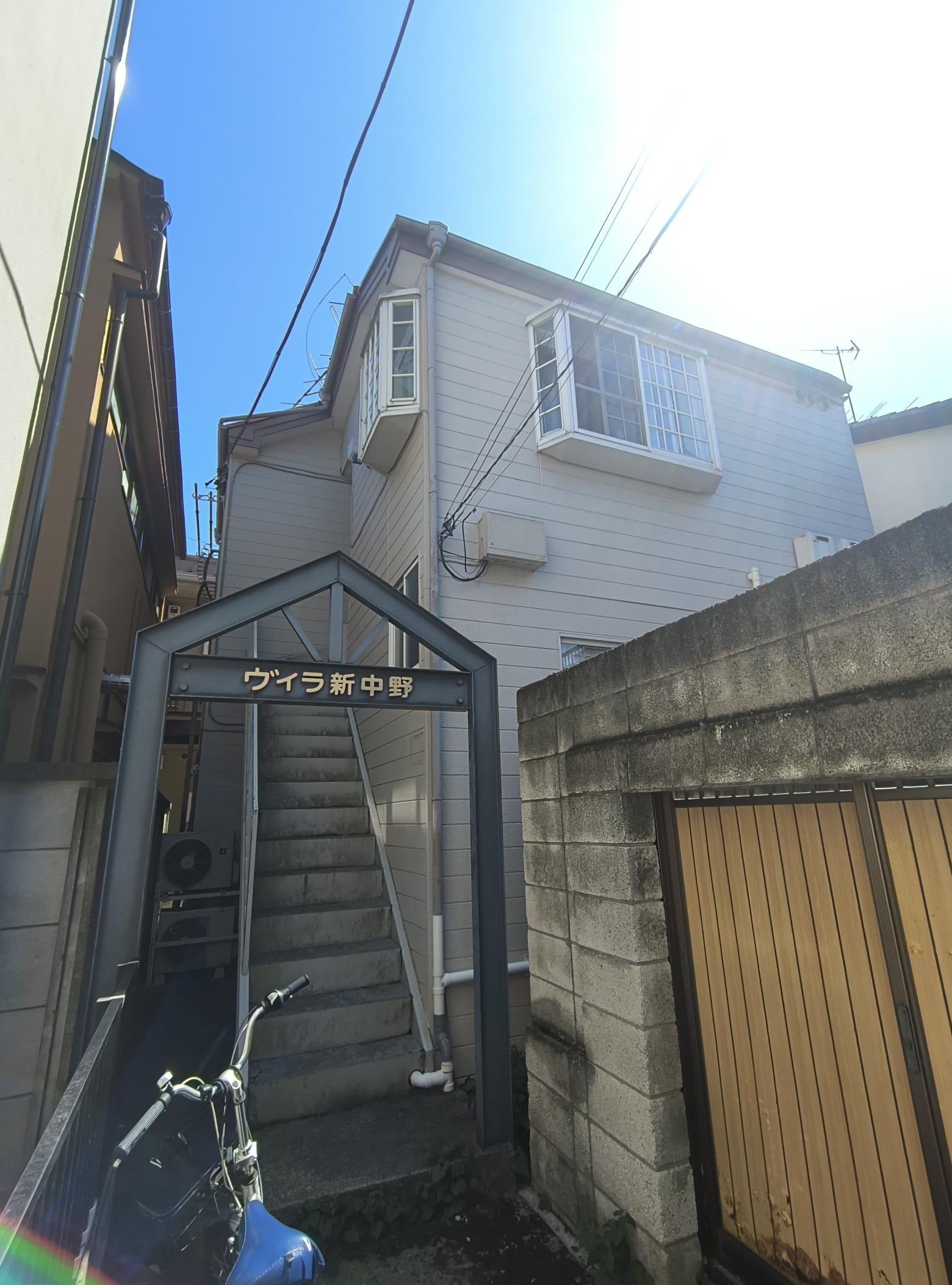 東京メトロ丸ノ内線「新中野」駅徒歩8分、複数駅・複数路線が利用可能な交通利便性の高い立地に位置する、木造2階建・全6戸のコンパクトアパート。